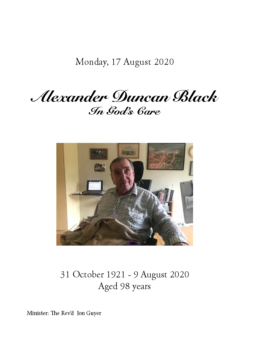 The next part of Alex’s life was taken up pursuing his love of farming and he took on a raft of community positions including Tallaganda Shire Council and -Southern Tablelands County Council as he believed that contributing to the community was important, continuing in many roles into his mid-70’s. At this point a further change of direction was made with Alex and Margaret starting to spend a lot of time on the coast where they spent time with Prue until she passed away and visiting Sydney to see Elizabeth and family but always managing to spend time at his favourite place Trafalgar Hill. Their life continued in this manner until Margaret passed away unexpectedly in 2009, Alex continued to live on his own until several years later a stoke left him partially incapacitated and he agreed to be moved to a nursing home in Wentworth Falls close to Elizabeth and family. Here he, under the watchful and caring eyes of Elizabeth enjoyed life to the fullest with daily visits and outings arranged by his wonderful family. We all thought he would live forever and joked about him wanting to be 100 and get a letter from the Queen but unfortunately this was not to be. Something changed and in a few short weeks his decline was swift and irreversible.